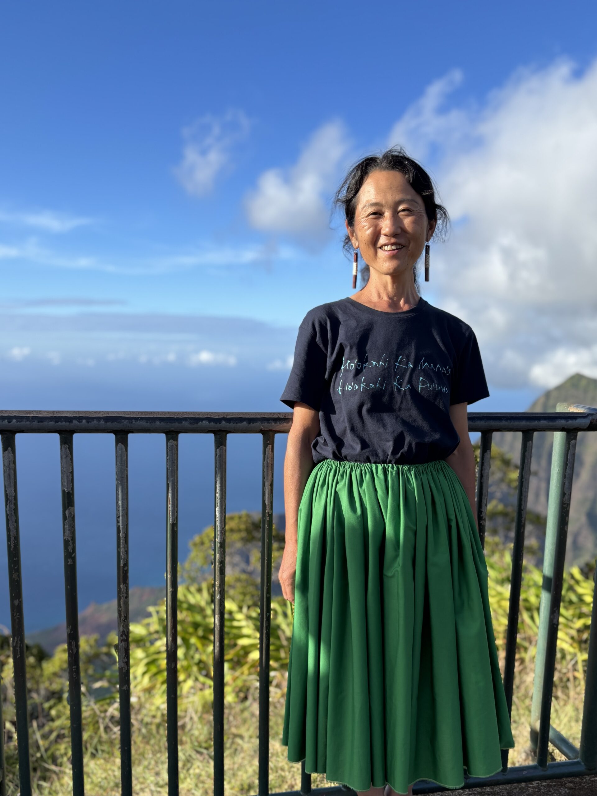 ハワイ、カウアイ島のクム・フラ、プナ・カラマ・ドーソンのアラカイナとして、20年以上にわたり、フラとアロハの精神性を学んでいます。クムと共に、ヨーロッパ、アメリカ、日本、ハワイ諸島各地でフラとアロハの精神をシェアし、ハラウのフラ・プログラムのオーガナイズや通訳、自身でもアロハに関する講座やイベントの企画運営・実施を行っています。